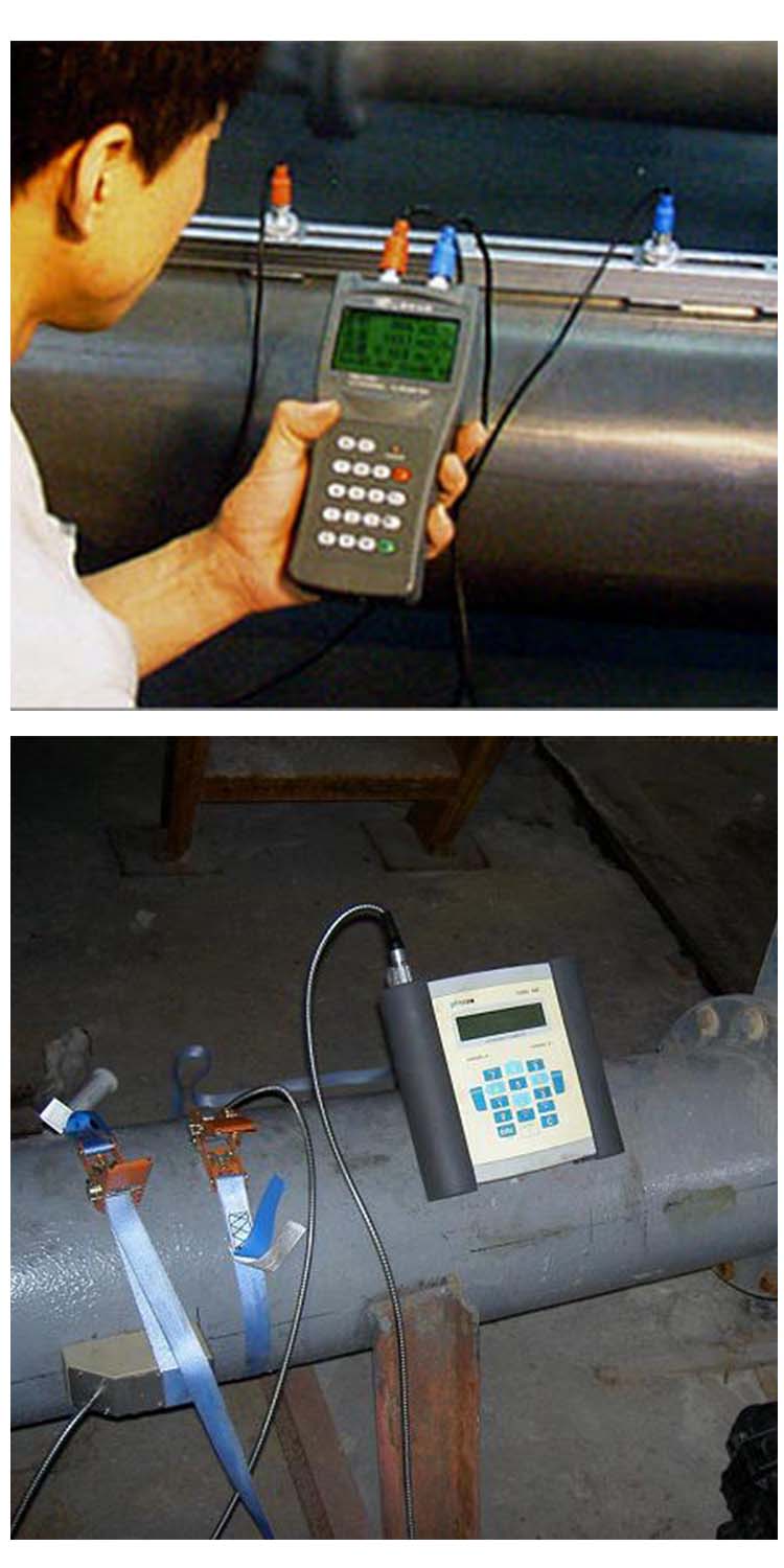 一个探头发射信号穿过管壁、介质、另一侧管壁后,被另一个探头接收到,同时,二号探头同样发射信号被一号探头接收到,由于受到介质流速的影响,二者存在时间差Δt,根据推算可以得出流速V和时间差Δt之间的换算关系V=(C2/2L)×Δt,进而可以得到流量值Q。手持式超声波流量计采用外夹式传感测量液体流量。安装过程极为简单,全中文的人机界面,易于操作。适合流量平衡测试及流量监测:饮用水、河水、海水、冷却水、热水、工业污水、润滑油、柴油、燃油、化工液体等。
